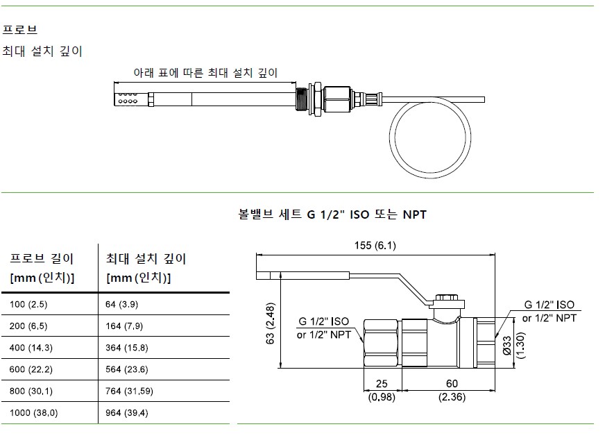 수 있어 설치 깊이를 자유롭게 조절할 수 있습니다. 옵션인 볼 밸브를 활용하면 공정을 중단하지 않고도 프로브 탈착이