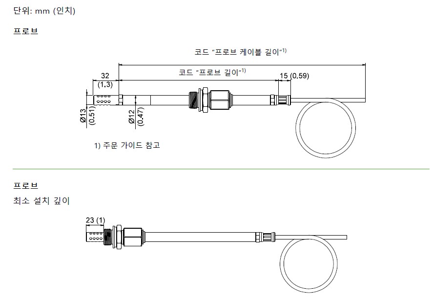 - 프로브 길이 옵션: 100mm / 200mm / 400mm / 600mm / 800mm / 1000mm 중 선택 가능