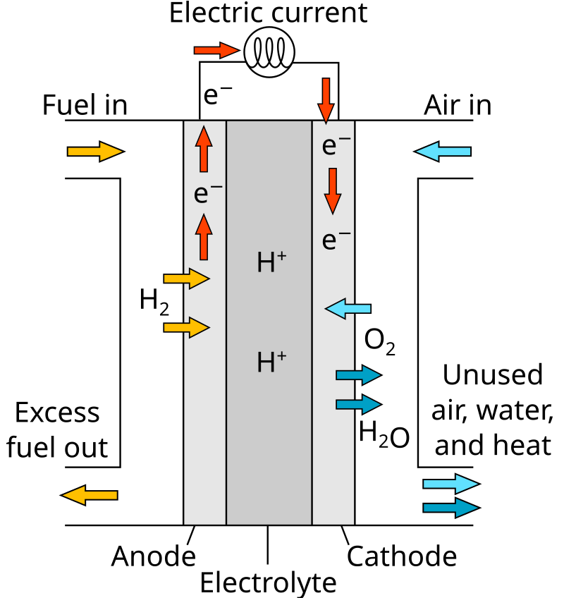출처: Wikipedia, PEM 연료 전지 구성 PEMFC의 기본 구조는 다음과 같습니다.