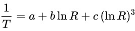 - a,b,c: 각 서미스터 고유의 보정 상수